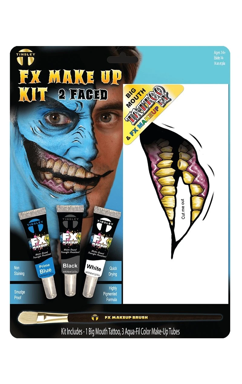 Includes: 3 Face Paints, 1 Big Mouth Tattoo, 1 Brush