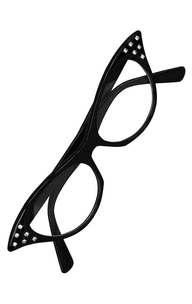 Add some 50s retro style glamour to your halter-neck hop dress, soda pop girl or Grease inspired outfit with these black cat-eye shaped sunglasses, complete with rhinestone detailing. It was all about the rhinestones!