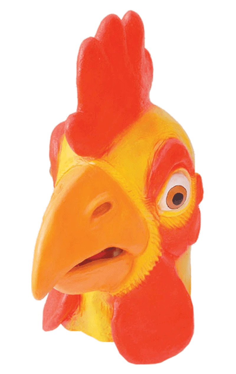 Deluxe overhead rubber chicken facepiece. You can see through the opening in the beak.
