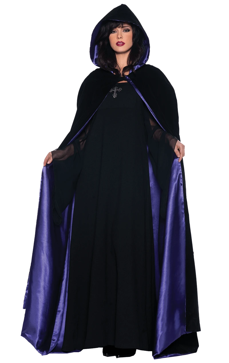 Our super sensual Adult Deluxe Velvet and Satin Purple Cape is the accessory you need to complete your mysterious witch or vampire look. Sweep around the room, hidden from the glare of the sun, as you slip into this magnificent accessory.