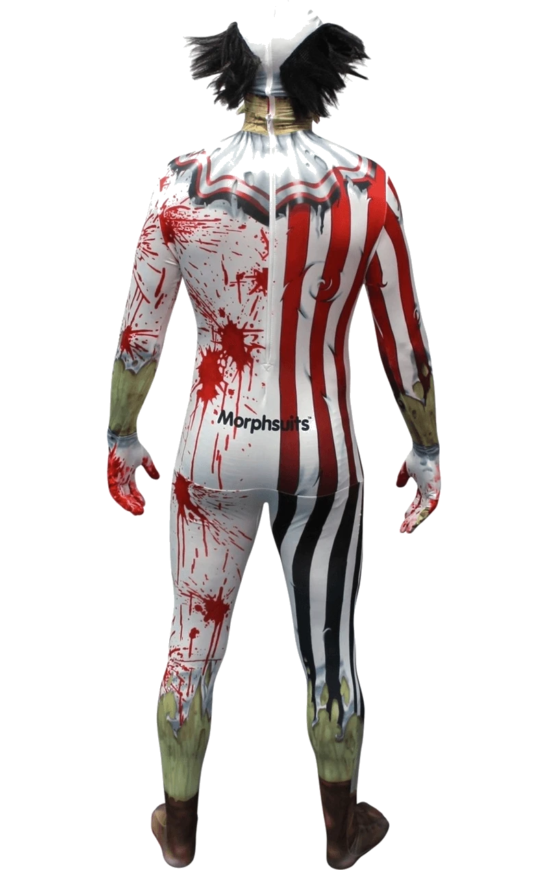 Get ready to seriously freak everyone out this Halloween in this Adult Jaw Dropper Clown Morphsuit. With the suit covered in blood splatter you will look like you have just come from attacking your last victim.