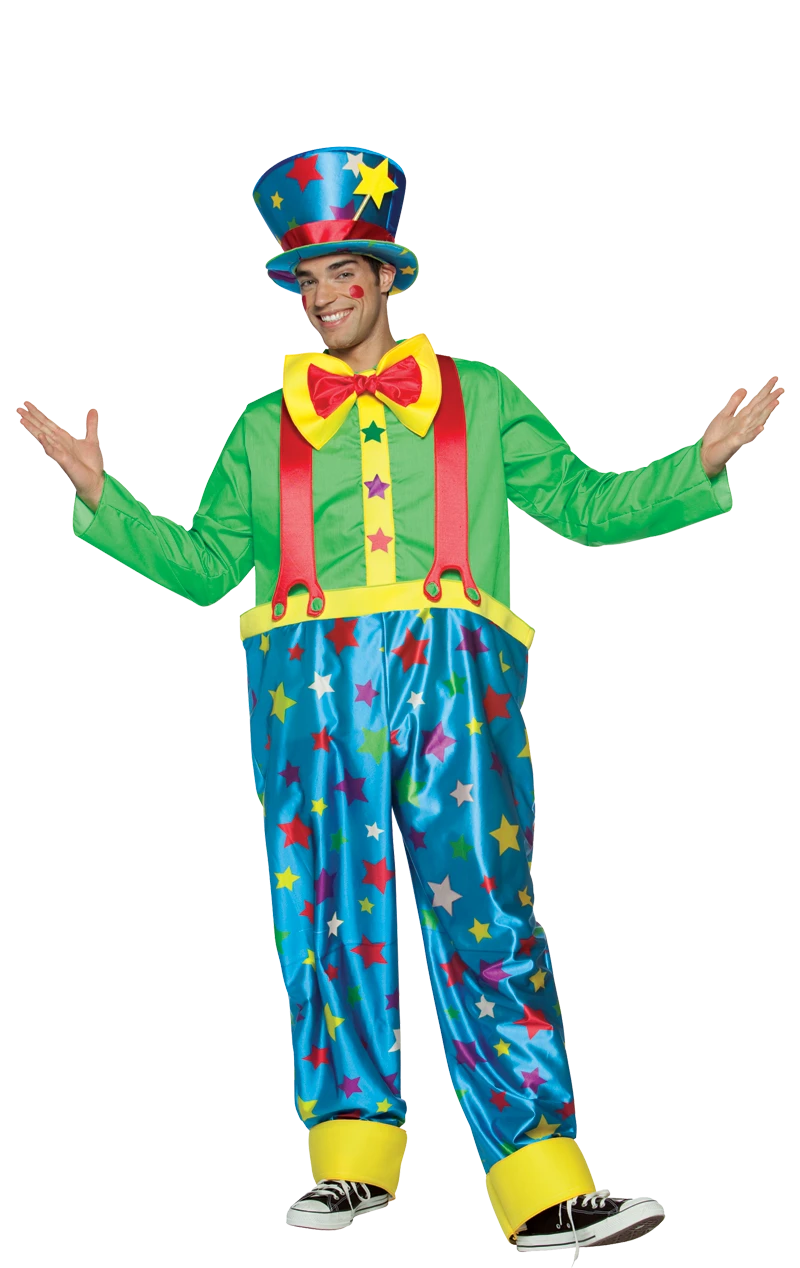 Be the star of the party in our Adult Star Clown Costume. A fantastic suit for the very best of entertainers, this bright flamboyant look will have everyone in stitches! Perfect for parties and other entertainment events.