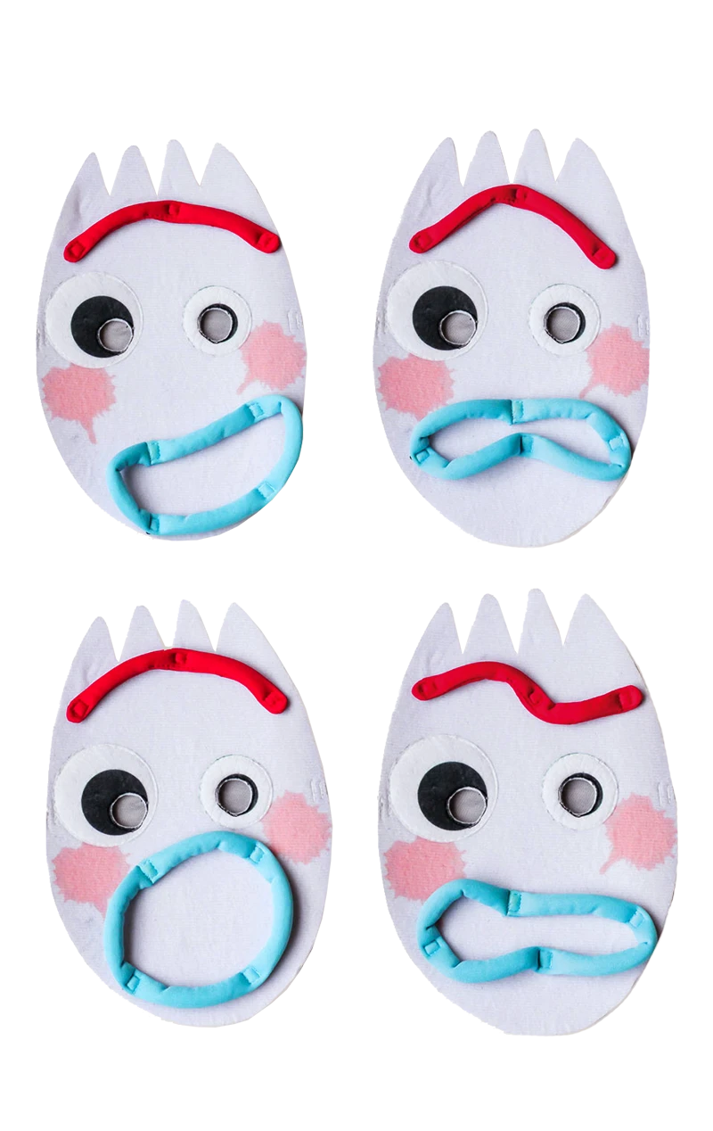 They’ll have lots of fun changing Forky’s expressions with the four interchangeable faces to stick onto the facepiece.