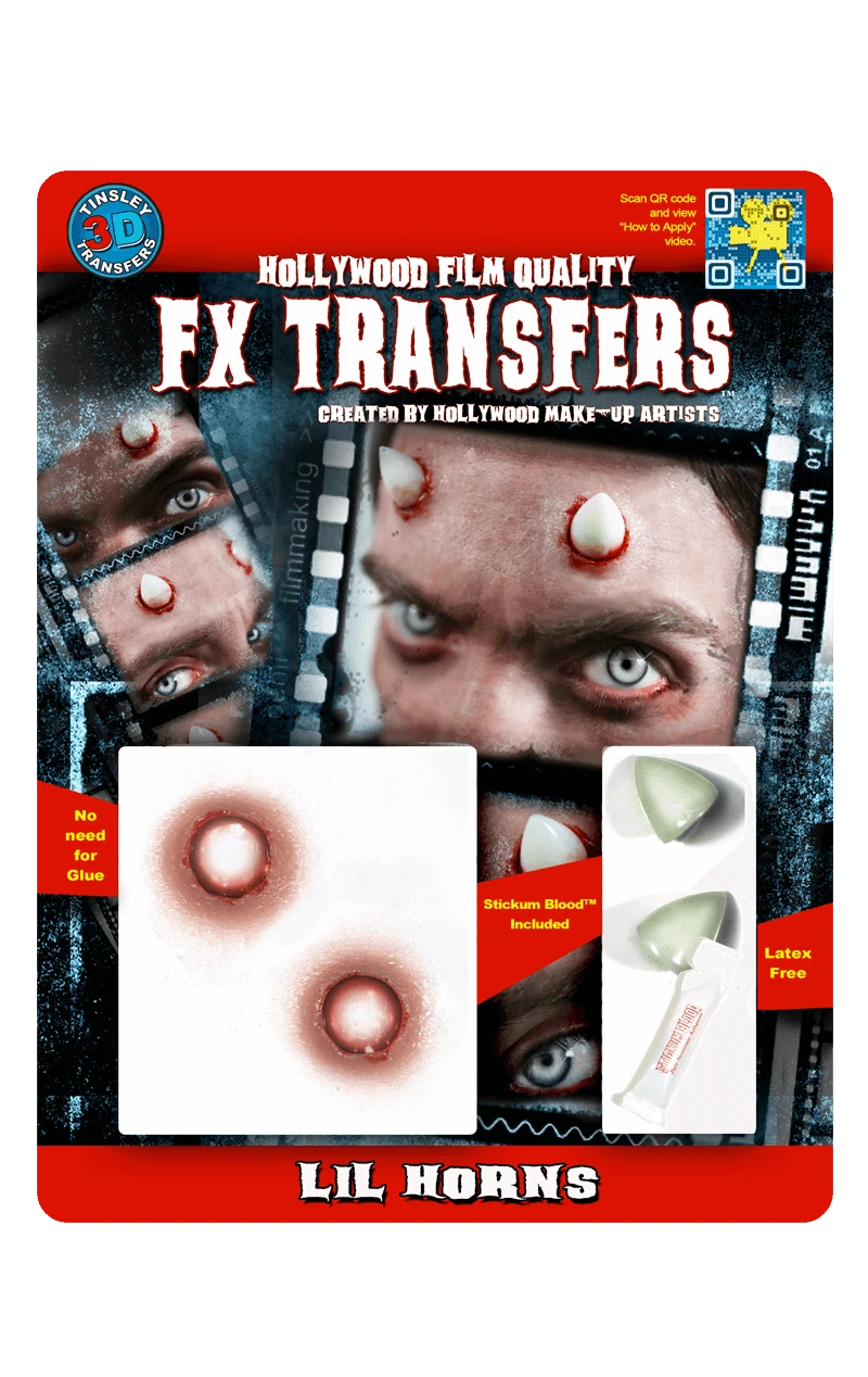 If you’re not a fan of devil horn headbands and you want a more realistic devil look this Halloween, then why not try our Lil Horns 3D FX Transfer. This cleverly applied prosthetic gives the impression that you have actual horns growing out of your forehead! What’s more, they’re easily applied with water, no messy glues needed. Add a touch of blood if required, for a finishing touch.