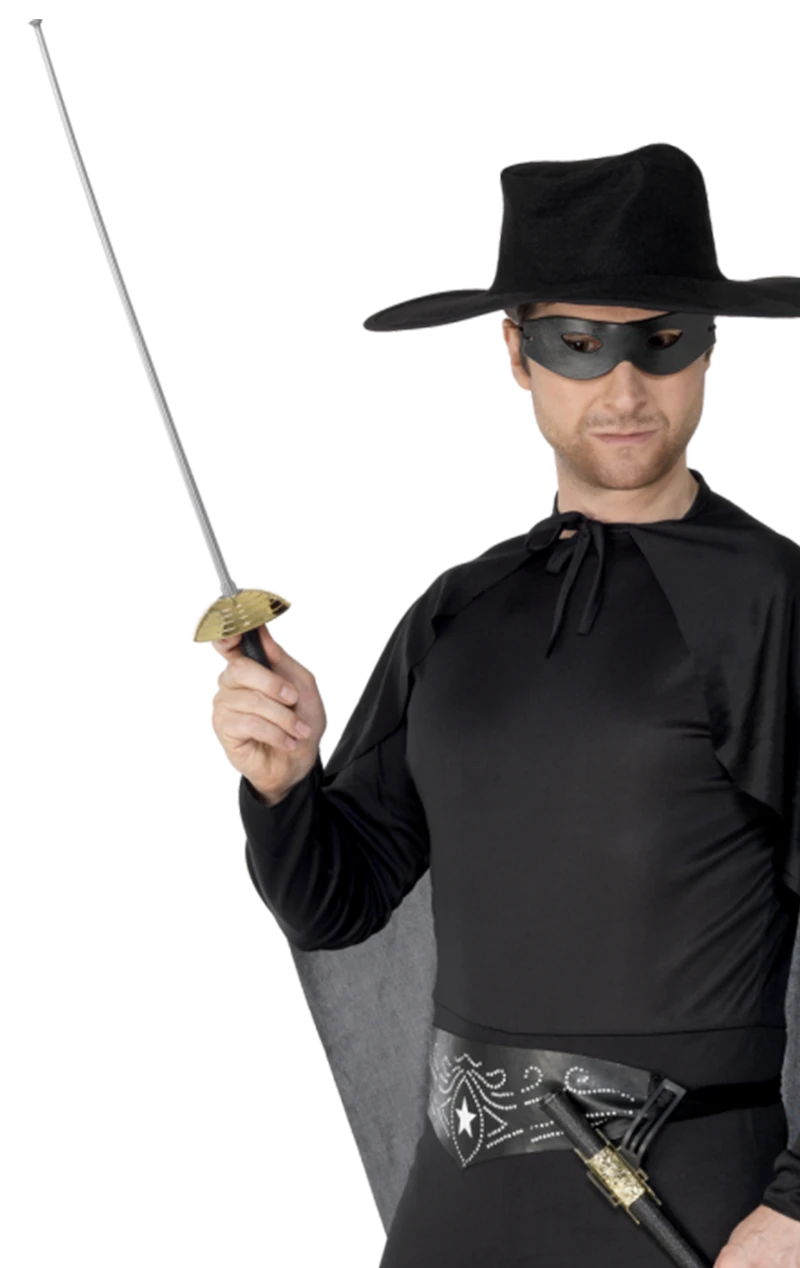 Get ready for a Latin adventure when you don the Zorro Sword and Eyefacepiece fancy dress accessories! Make sure your sword and dancing skills are up to scratch, and get carving your signature ‘Z’ all around the place, really annoying all of the authorities! Perfect for a movie night and as an edition to a Zorro costume, there will be nothing stopping you at the fancy dress party.