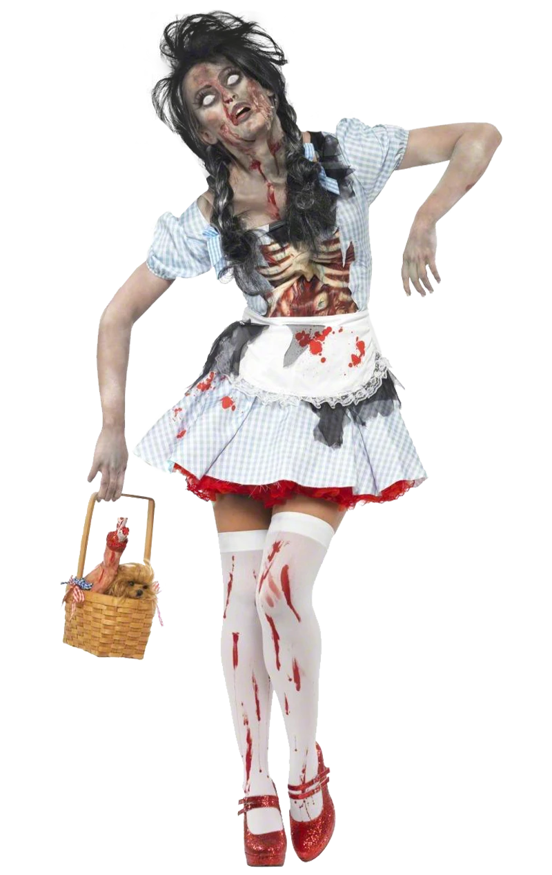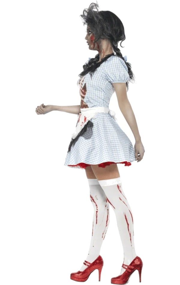Looks like there was a terrible accident in Oz in our Womens Zombie Dorothy Costume. We don’t think you are in Kansas anymore…