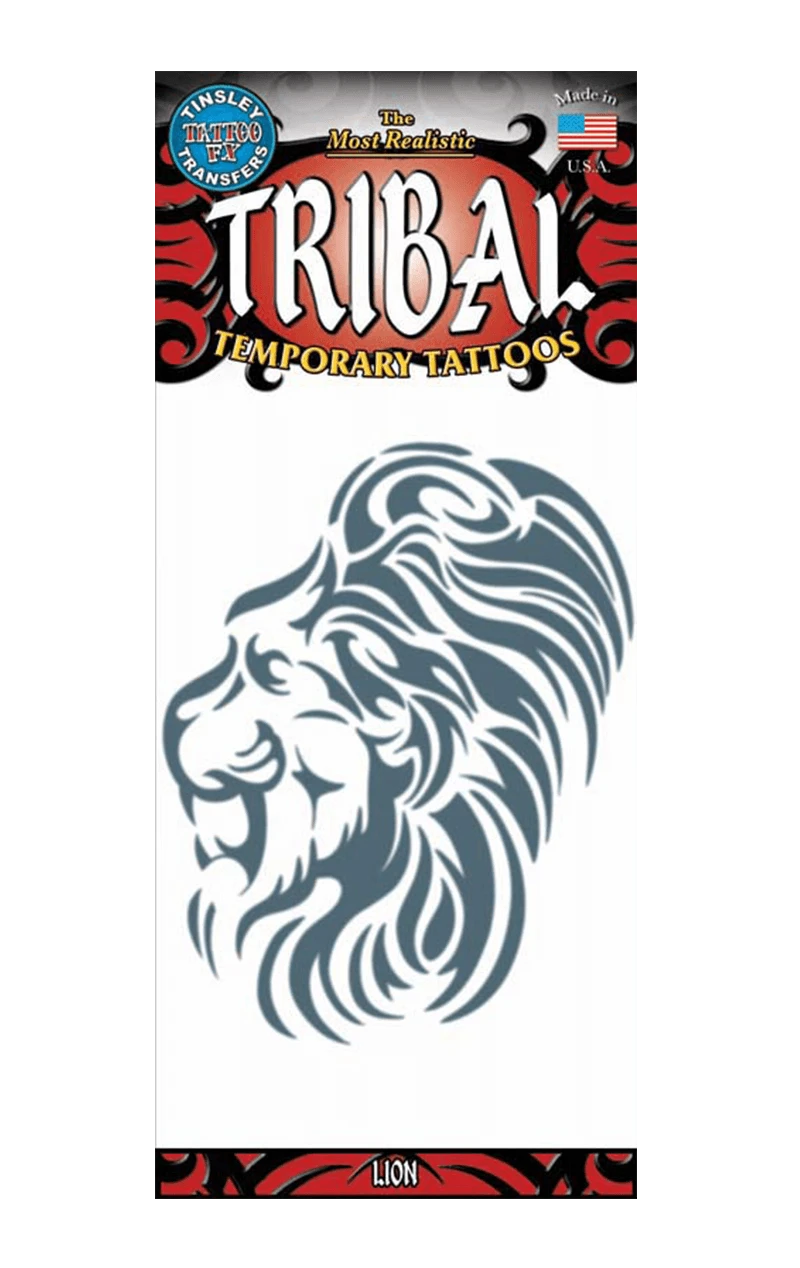 Fancy a rebellious costume look for your next fancy dress party? Perhaps you want to show off the lion inside yourself. Our Tribal Lion Tattoo Transfer is perfect for a wild look without the commitment of a real tattoo. Super easy to apply, they last for days! Just apply water and you’re set.