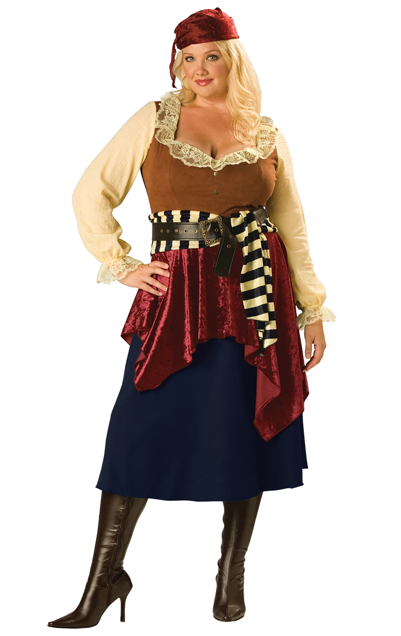 Show the pirate crew you mean business with our fun and sexy women’s Plus Size Pirate Beauty Costume. This is a flattering outfit with plenty of rebellious charm, for your adventures across the seven seas.
